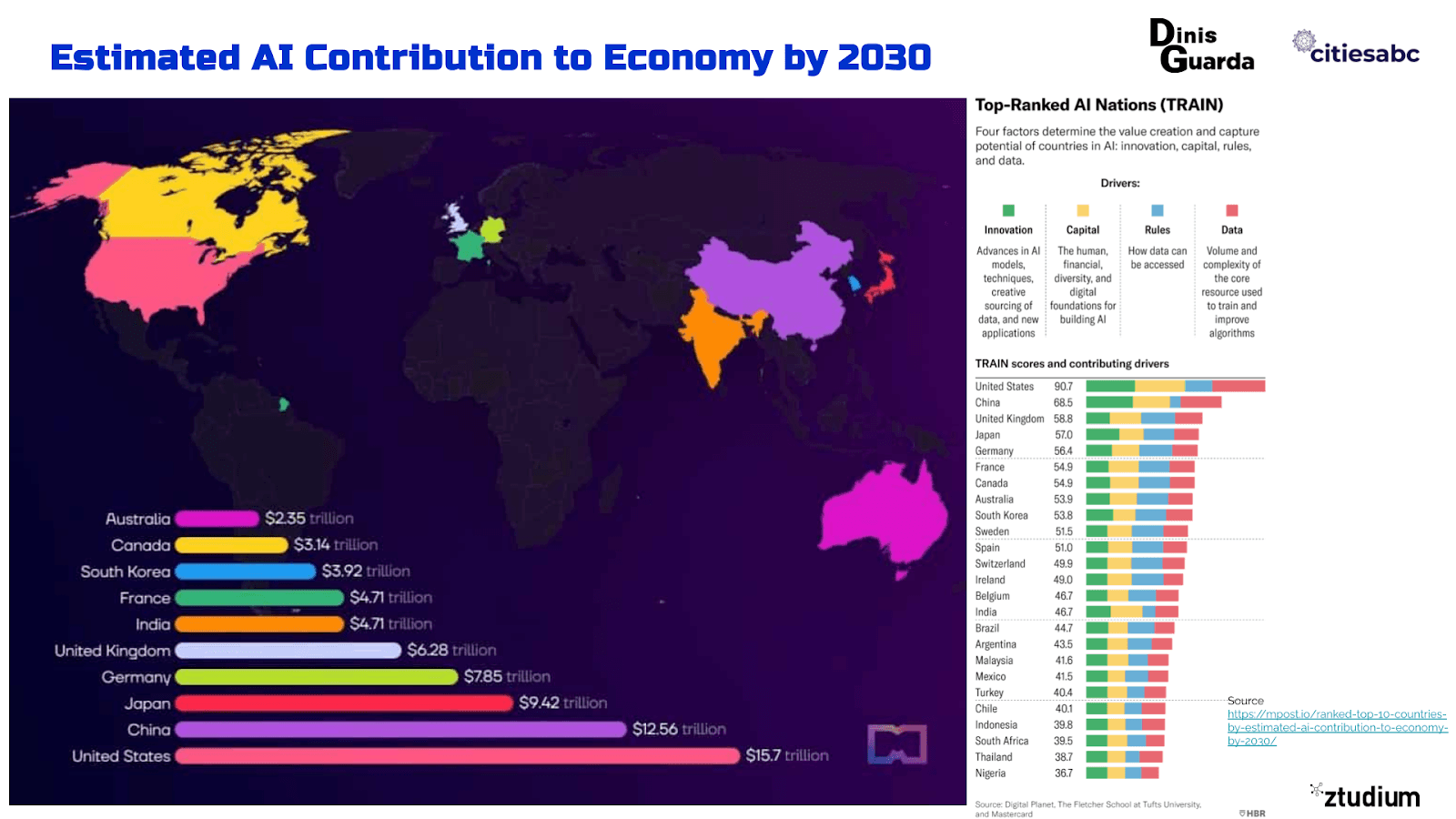 Exceeds the combined current output of China and India. Of this, $6.6 trillion is likely to come from increased productivity, and $9.1 trillion is expected to come from consumption-side effects. Most of the world's population, economy, businesses, cities, and governments are not prepared. The governments will have to be prepared for this world innovation.