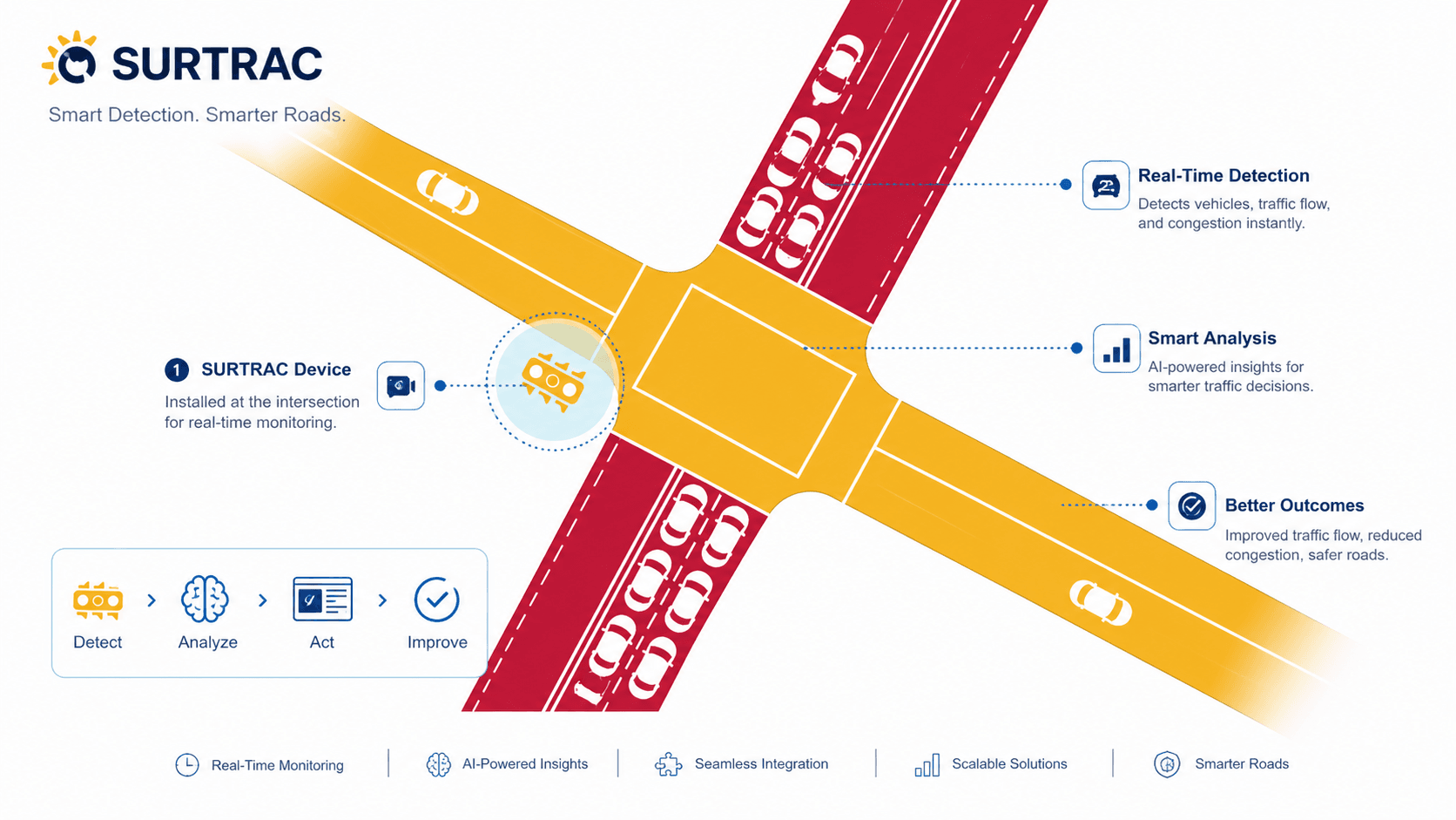 SURTRAC replaces static traffic management with real-time, data-driven decision-making. The system operates through a continuous cycle of sensing, predicting, and optimising.