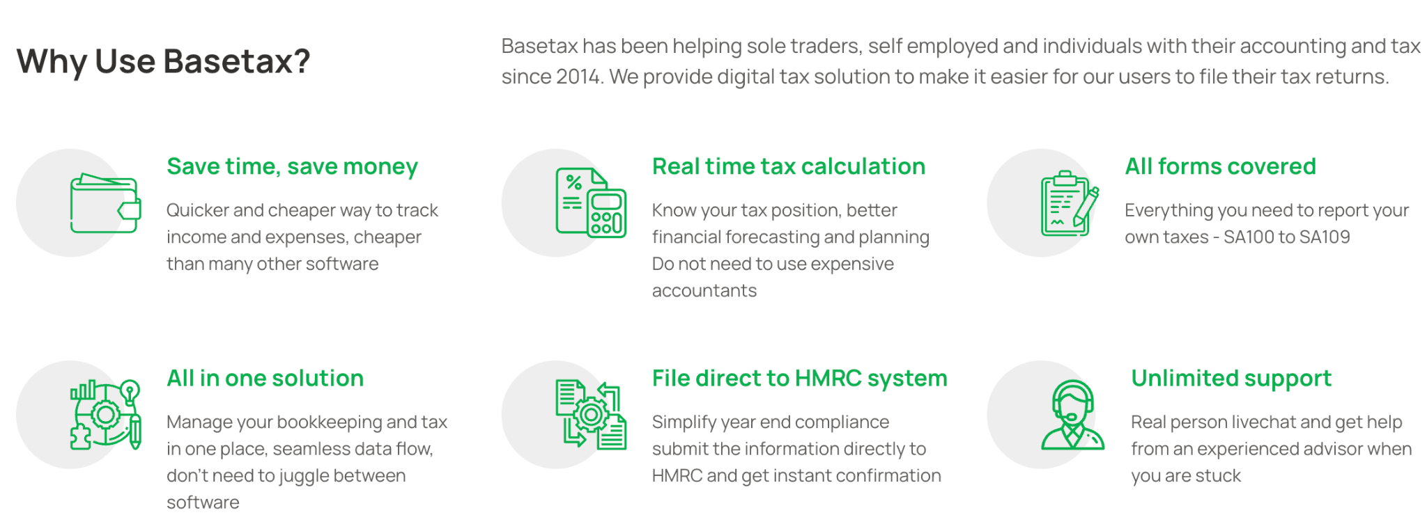 Tax Compliance | Supports HMRC & Making Tax Digital; may require add-ons for full automation | Fully compliant with HMRC & MTD; automated calculations | Basetax focuses heavily on UK tax automation |