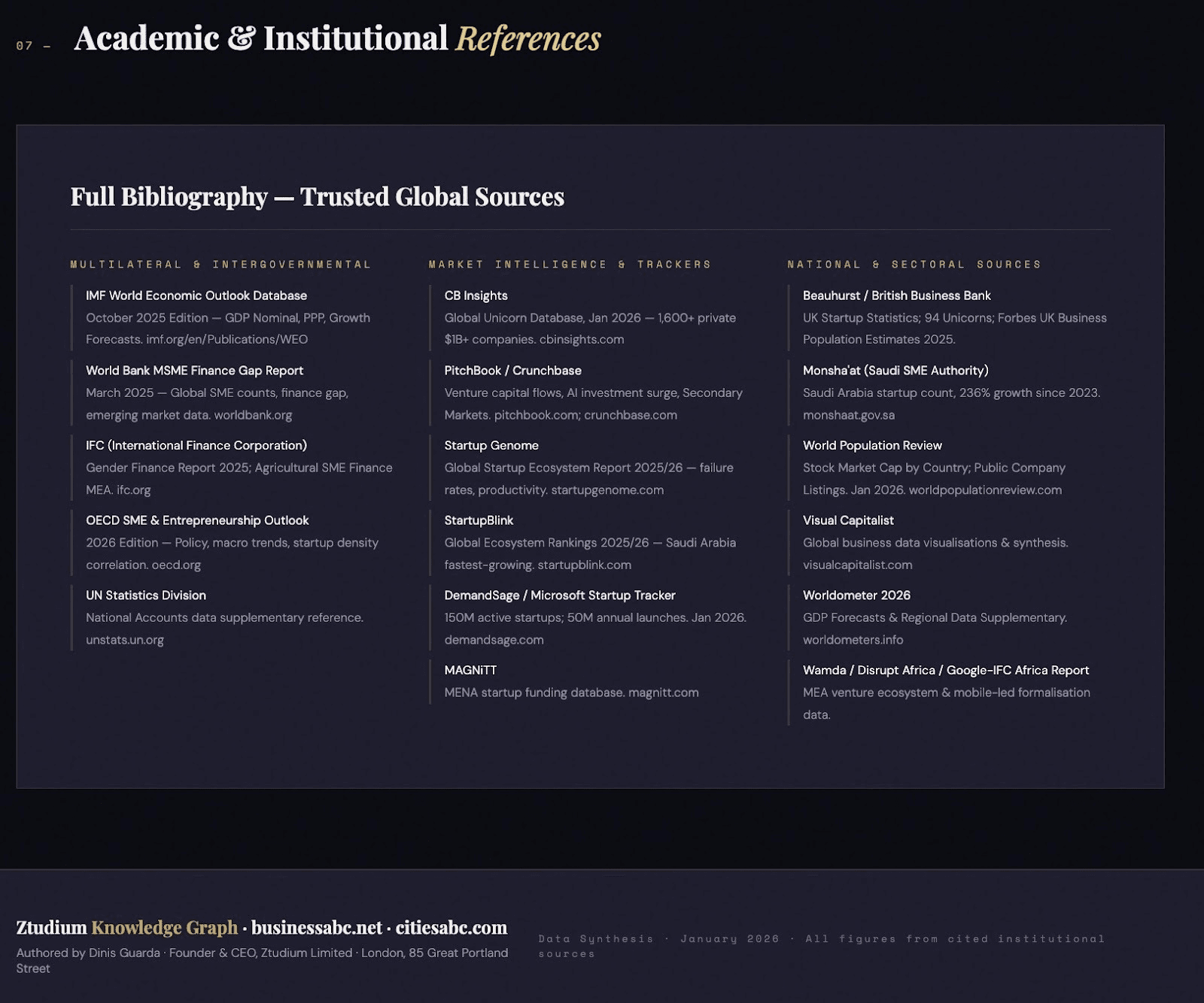- SME Counts: World Bank MSME Finance Gap Report (March 2025); Forbes UK Business Population Estimates (2025).