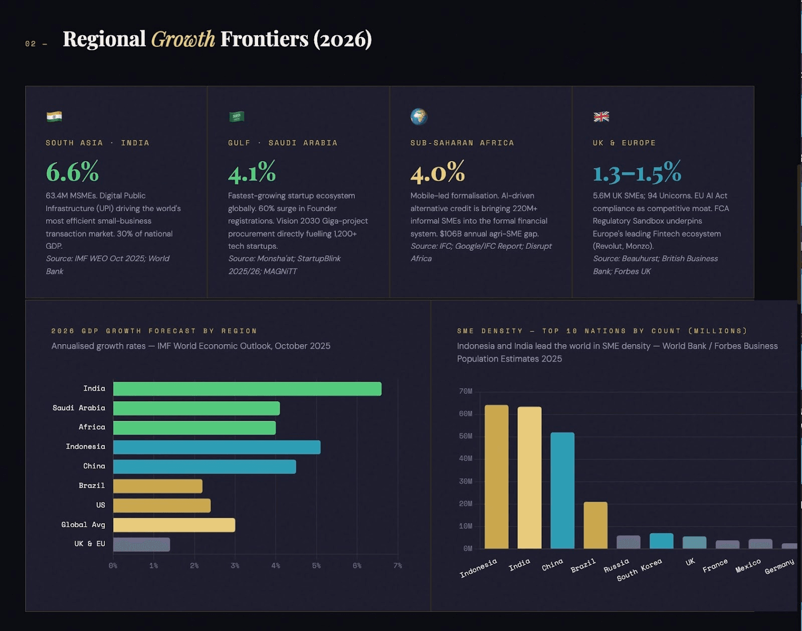 - Informal SMEs: Over 220 million businesses, largely in the Middle East, Africa, and SE Asia. In 2026, "Fintech Formalisation" is the biggest trend, using AI to give these businesses a "digital identity" so they can access their first formal bank loans.