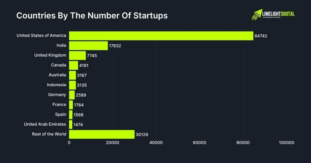 - Regional Leader: The United States remains the global hub with 1.31 million startups, followed by India at ~621,000.