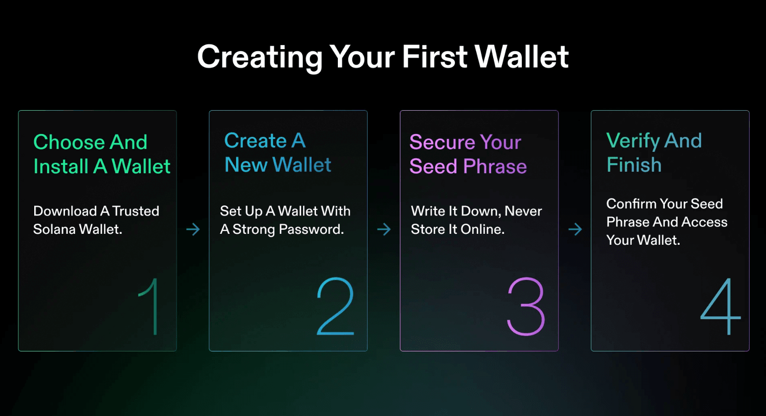 - Once confirmed, your wallet is ready. You will see your wallet address and an initial balance of 0 SOL.