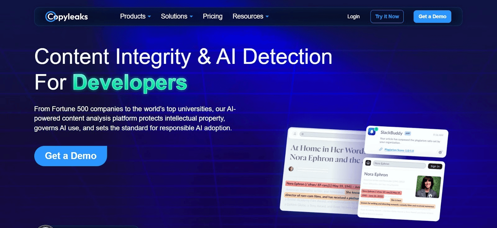 For organizations operating at scale, Copyleaks offers a robust infrastructure for automated content verification.