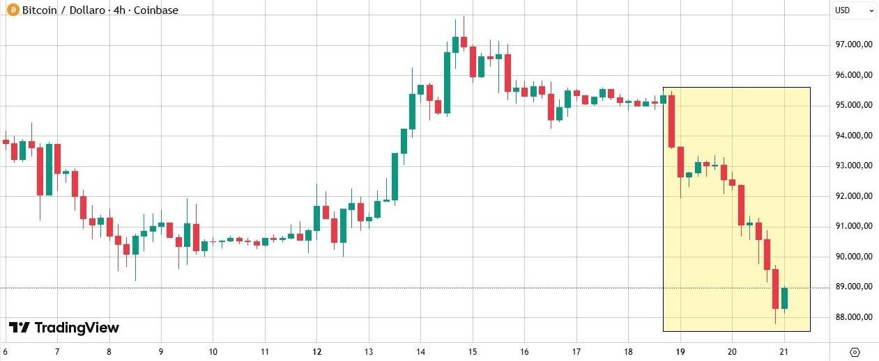 Bitcoin and stock indices, including the so-called Mag7, instead recorded mirror-image declines